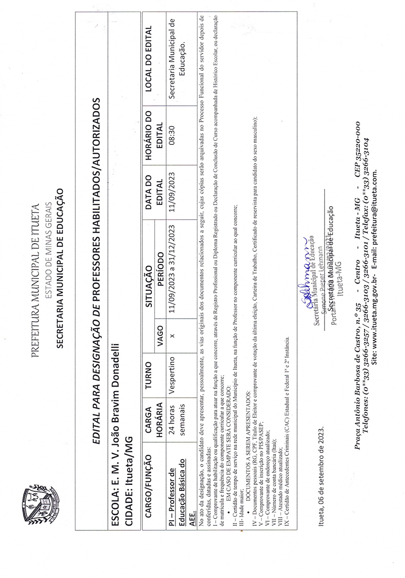 Página inicial > Últimas Notícias > Edital para designação de professores habilitados / autorizados - PI - Professor de Educação Básica do AEE (EMVJBD)