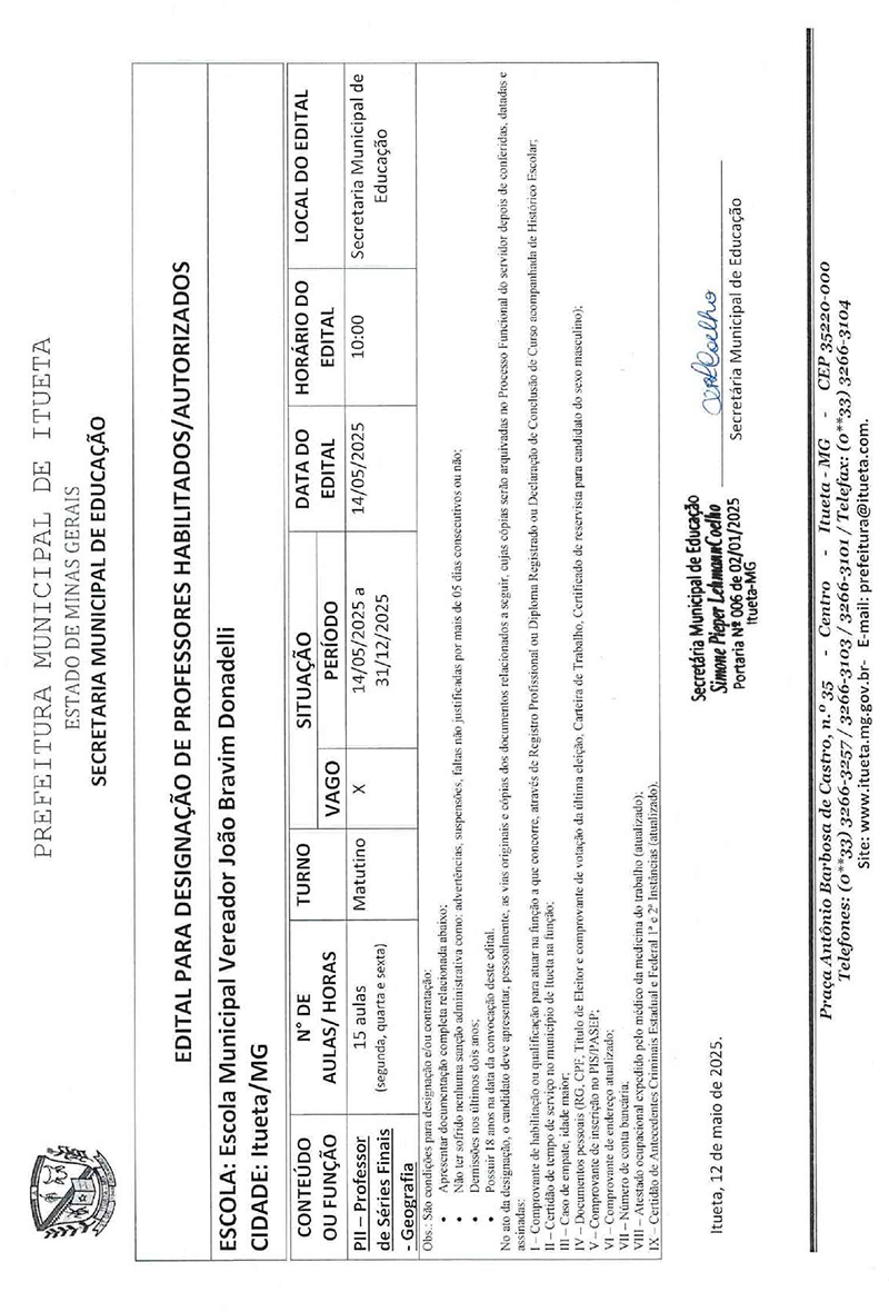 Página inicial > Últimas Notícias > Edital para designação de professores habilitados / autorizados - PII - Professor de Séries Finais - Geografia (EMBJ)