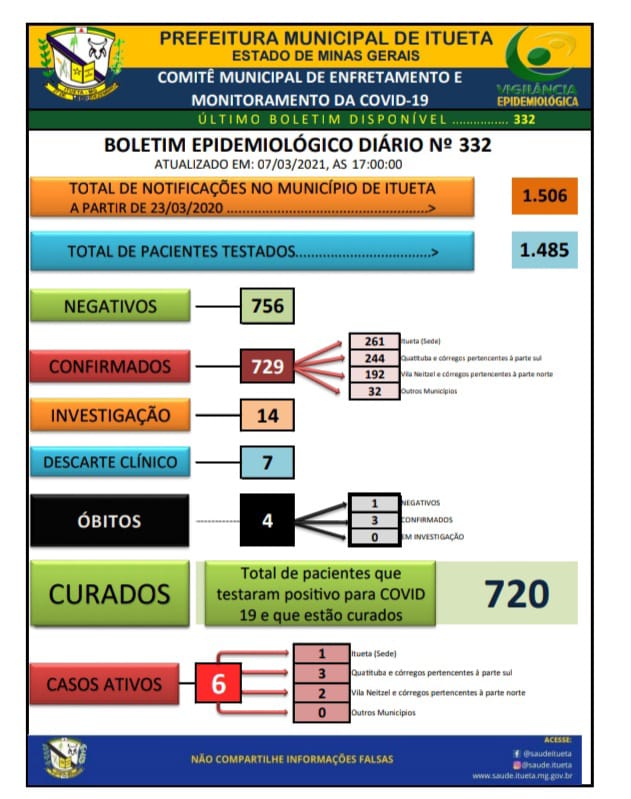 Boletim Epidemiológico sem alteração no dia de hoje.