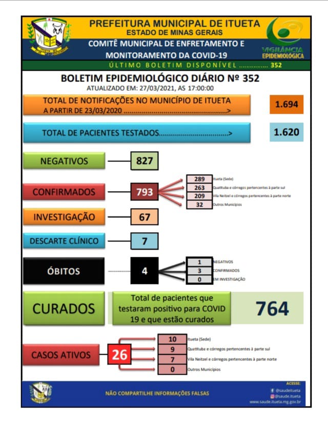 Boletim Epidemiológico sem alteração no dia de hoje.