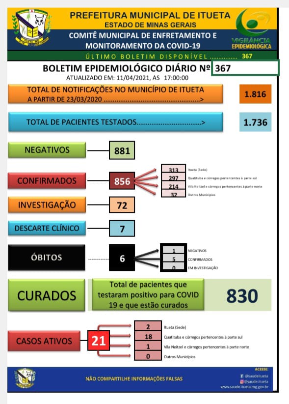 Boletim Epidemiológico sem alteração no dia de hoje.