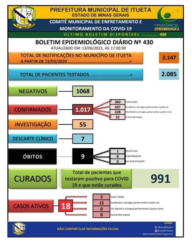 Boletim Epidemiológico sem alteração no dia de hoje.Dados abertos: Baixar planilha em formato excel. Clique aqui