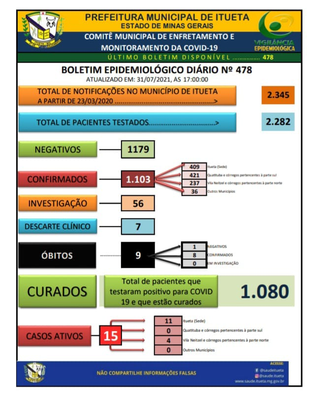 Hoje tivemos a inclusão de 03 caso positivo sendo:Dados abertos: Baixar planilha em formato excel. Clique aqui