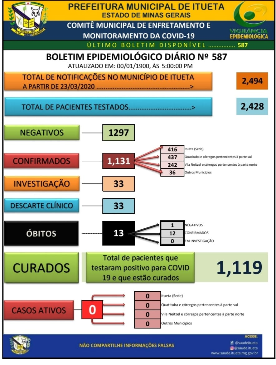 Boletim Epidemiológico sem alterações no dia de hoje.