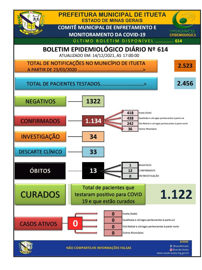 Boletim Epidemiológico sem alterações no dia de hoje.