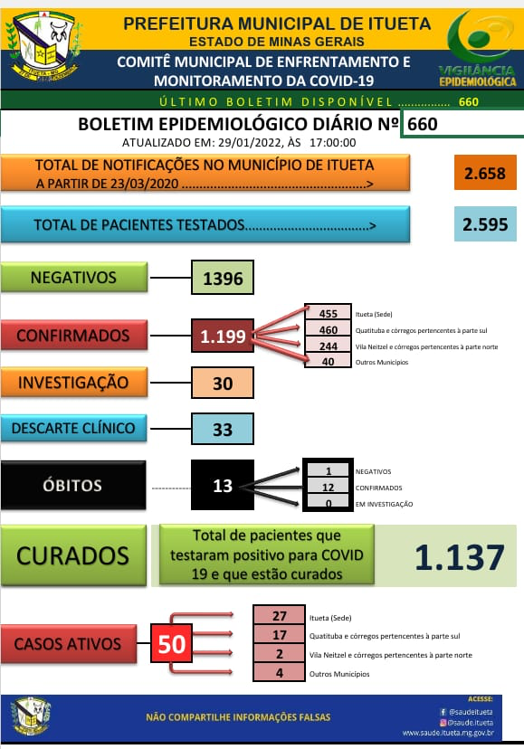 Destacamos a inclusão de 01 casos positivos em CURADOS.