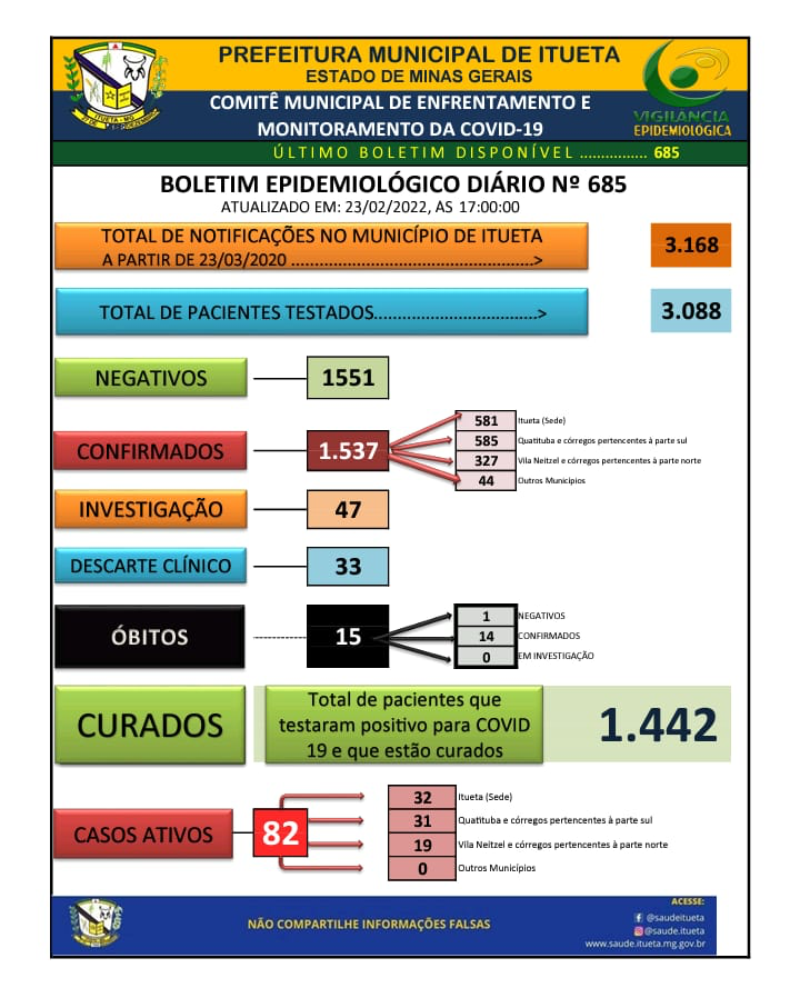 Página inicial > C19 - Boletins > Boletim Epidemiológico Diário nº 685