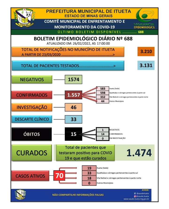 Boletim Epidemiológico sem alterações no dia de hoje.