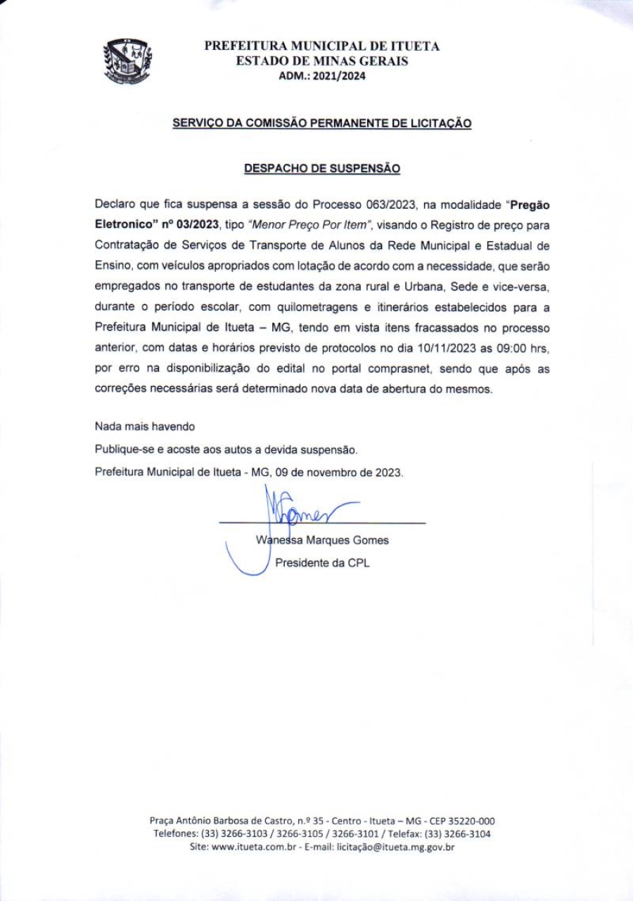Página inicial > Editais > Despacho de Suspensão