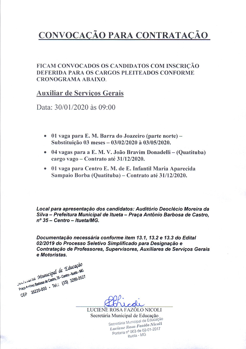 Ficam convocados os candidatos com inscrição deferida para os cargos pleiteados conforme cronograma abaixo:
