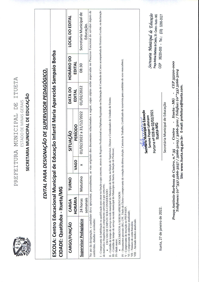Edital para designação de Supervisor Pedagógico - Educação Infantil