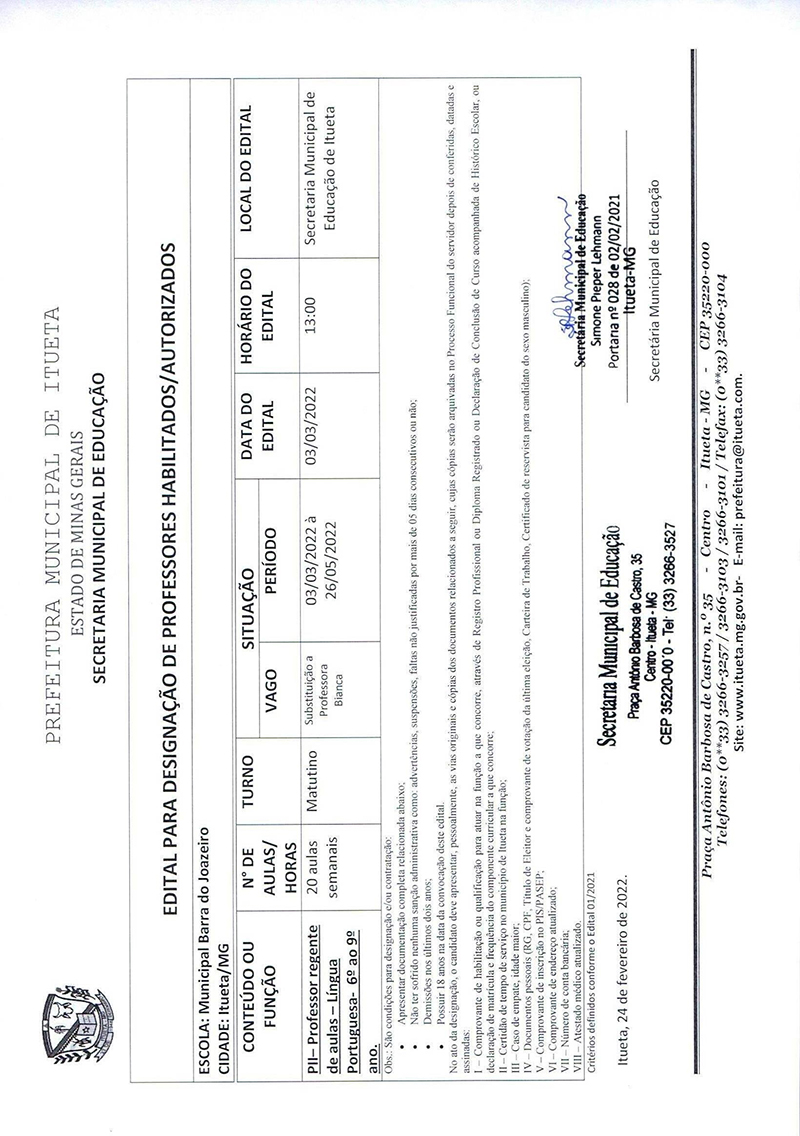Página inicial > Últimas Notícias > CONVOCAÇÃO PARA CONTRATAÇÃO - PII - Processo Seletivo Simplificado - Edital nº 01/2021
