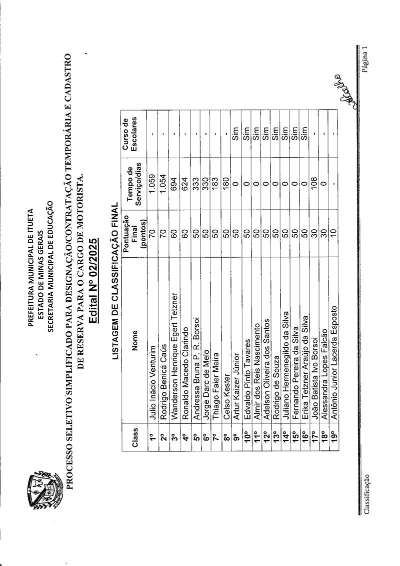 Resultado Final - Edital de Seleção Pública Simplificada nº 02/2025 (Motorista)