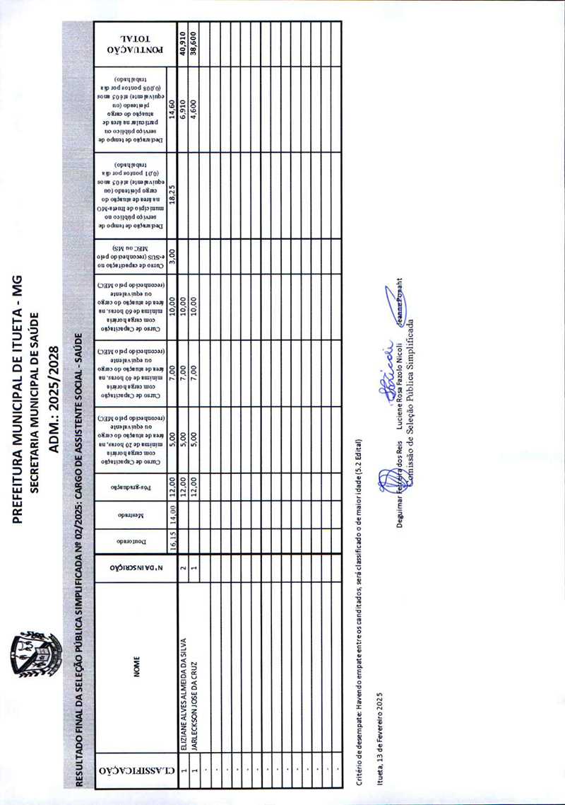 RESULTADO FINAL - Processo Seleção Pública Simplificada (Saúde) - Edital nº 02/2025