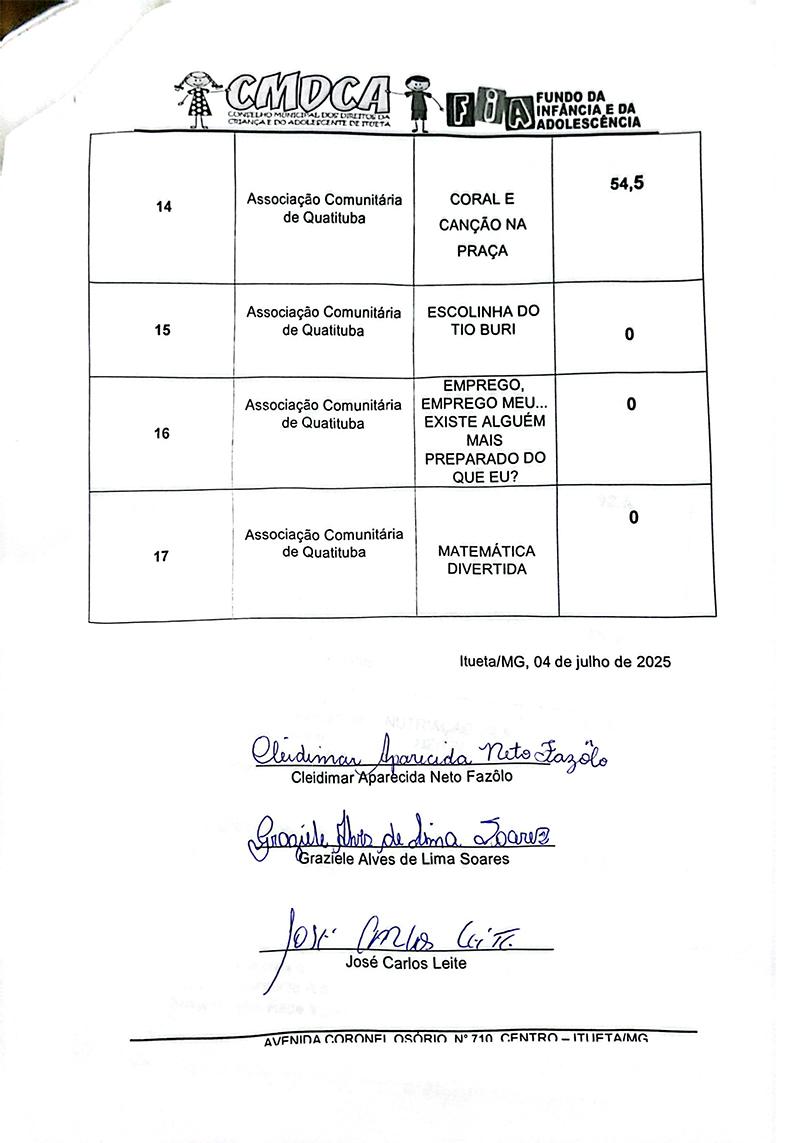 CMDCA - Resultado Final do Processo de Seleção do Edital de Chamamento Público 003/2025 (CMDCA)
