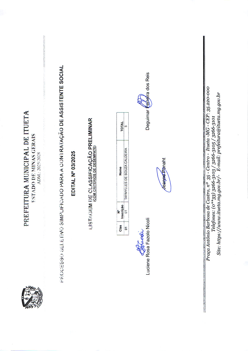 Resultado Preliminar - Processo Seleção Pública Simplificada (Assistência Social) - Edital nº 03/2025