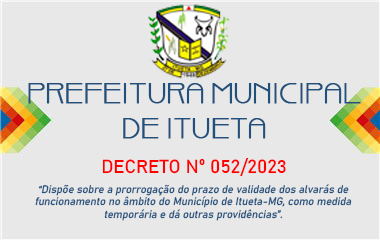 DECRETO Nº 052, DE 22 DE DEZEMBRO DE 2023. “Dispõe sobre a prorrogação do prazo de validade dos alvarás de funcionamento no âmbito do Município de Itueta-MG, como medida...