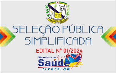 PROCESSO SELETIVO SIMPLIFICADO EDITAL Nº. 01/2024 A Secretaria Municipal de Saúde de Itueta – MG, no uso de suas atribuições legais, conferidos pela Lei Orgânica Municipal e Lei...