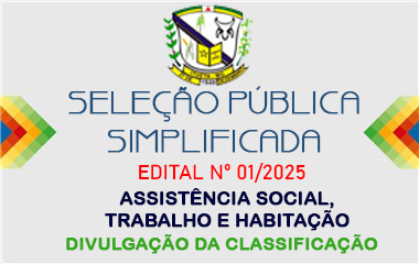 DIVULGAÇÃO DA CLASSIFICAÇÃO SECRETARIA MUNICIPAL DE ASSITÊNCIA SOCIAL, TRABALHO E HABITAÇÃO PROCESSO SELETIVO SIMPLIFICADO EDITAL Nº. 01/2025 O Prefeito do Município de...