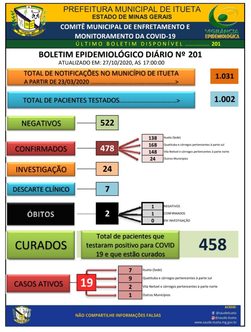 🚓 Se estiver como suspeito ou testado positivo NÃO saia de casa, pois constitui infração do Art 268 do Código Penal com pena de detenção de 1 mês a 1 ano e multa.