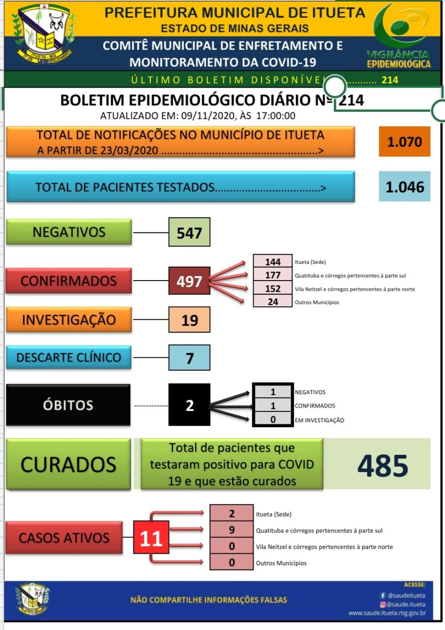 Hoje tivemos a inclusão de 02 casos positivos, todos em Quatituba e córregos pertencentes a parte Sul