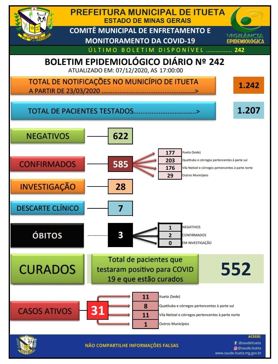 Página inicial > C19 - Boletins > Boletim Epidemiológico Diário nº 242