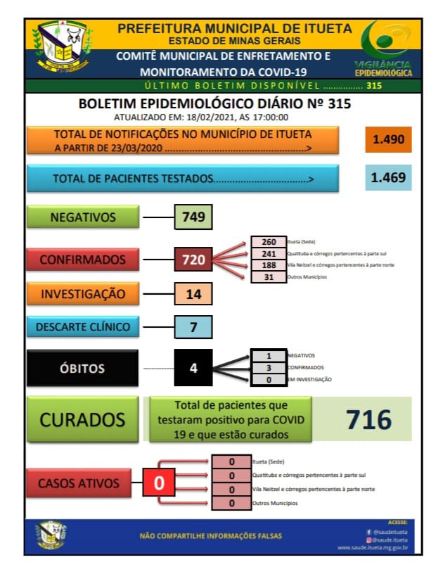 Página inicial > C19 - Boletins > Boletim Epidemiológico Diário nº 315