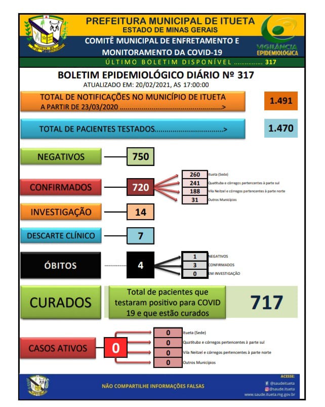 Boletim Epidemiológico sem alteração no dia de hoje.