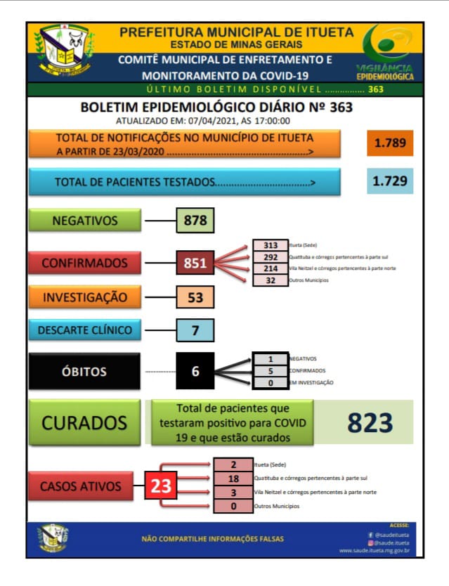 🚓 Se estiver como suspeito ou testado positivo NÃO saia de casa, pois constitui infração do Art 268 do Código Penal com pena de detenção de 1 mês a 1 ano e multa.