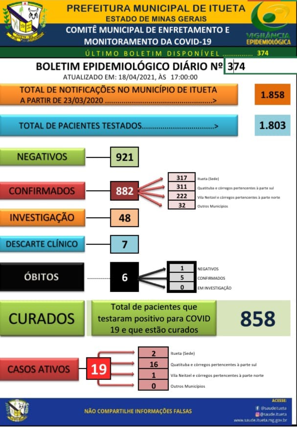 Página inicial > C19 - Boletins > Boletim Epidemiológico Diário nº 374