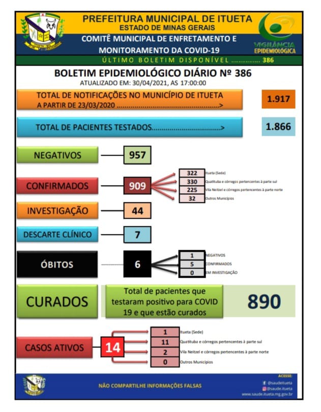 Destacamos a inclusão de 02 casos positivos em CURADOS.
