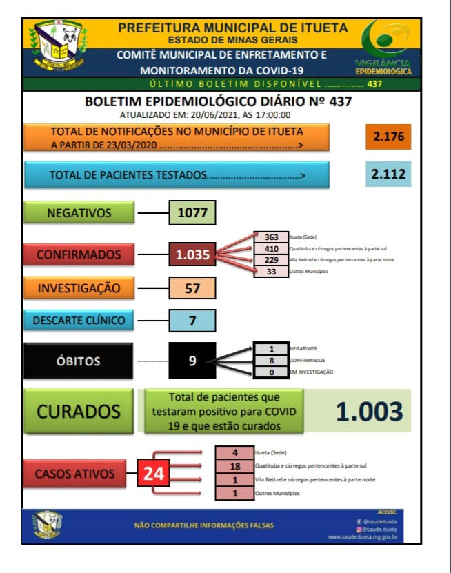 Boletim Epidemiológico sem alteração no dia de hoje.Dados abertos: Baixar planilha em formato excel. Clique aqui