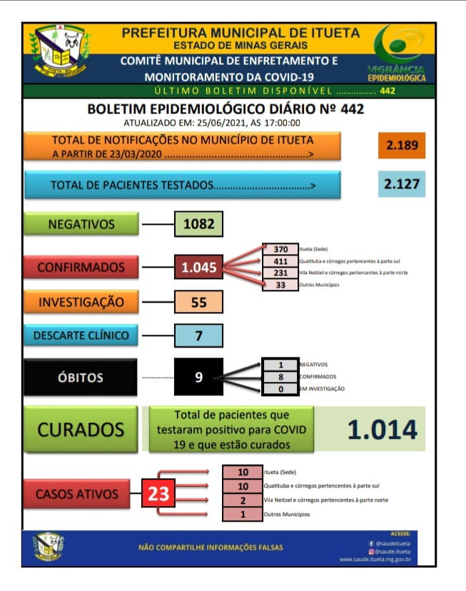 Página inicial > C19 - Boletins > Boletim Epidemiológico Diário nº 442