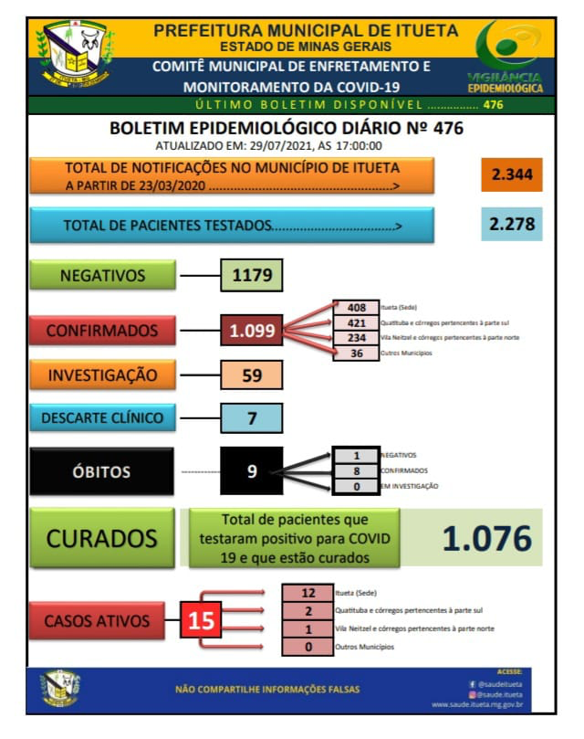 Não tivemos inclusão de casos positivos no dia de hoje.Dados abertos: Baixar planilha em formato excel. Clique aqui
