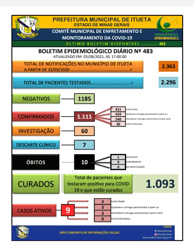 Destacamos a inclusão de 01 caso positivo em CURADOS