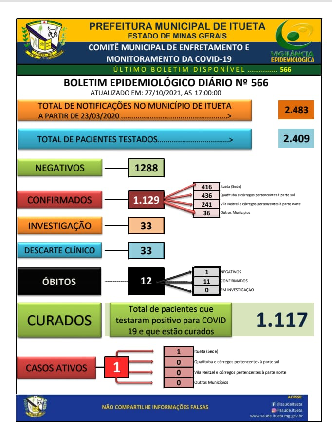 Boletim Epidemiológico sem alterações no dia de hoje.