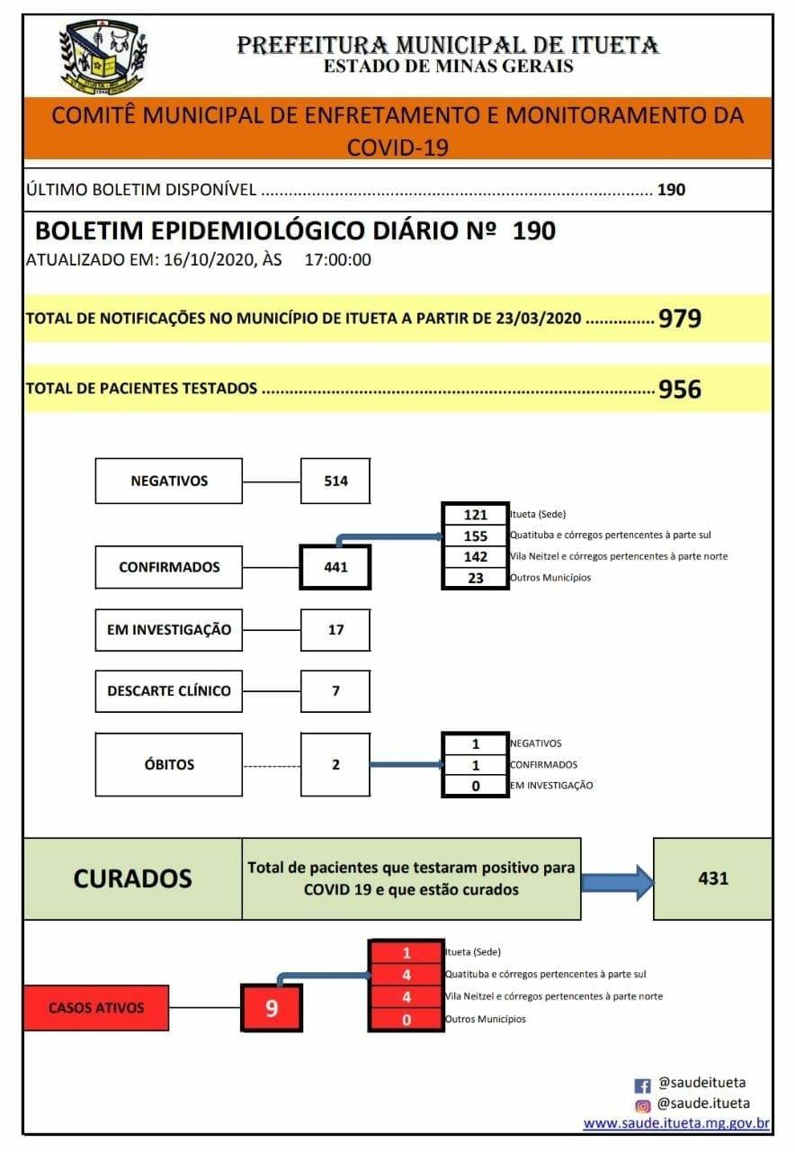 Hoje tivemos a inclusão de 02 casos positivos sendo todos em Quatituba e córregos pertencentes a parte Sul.